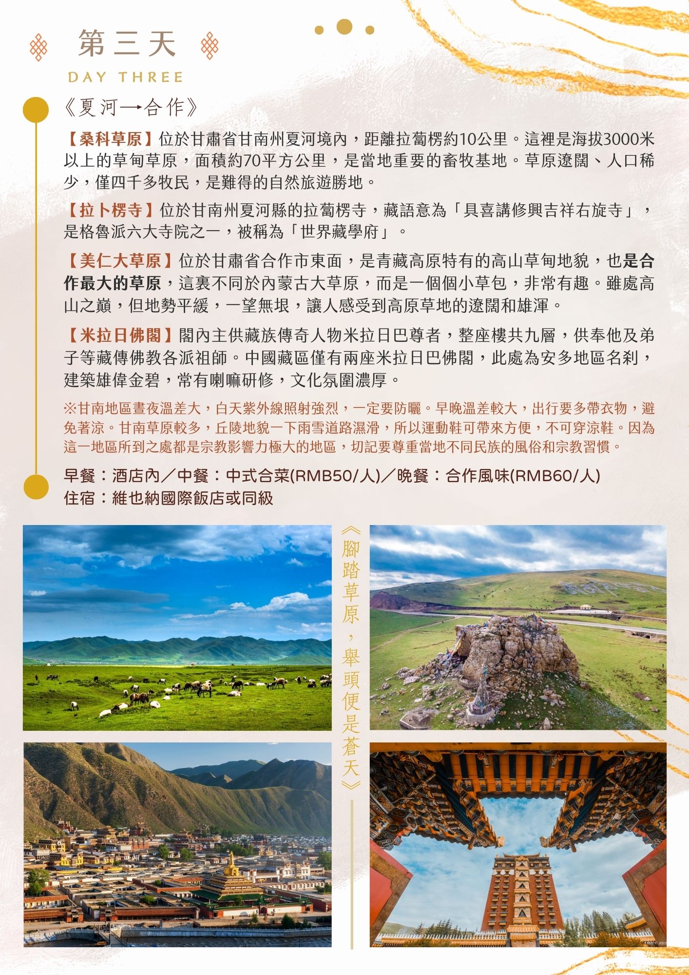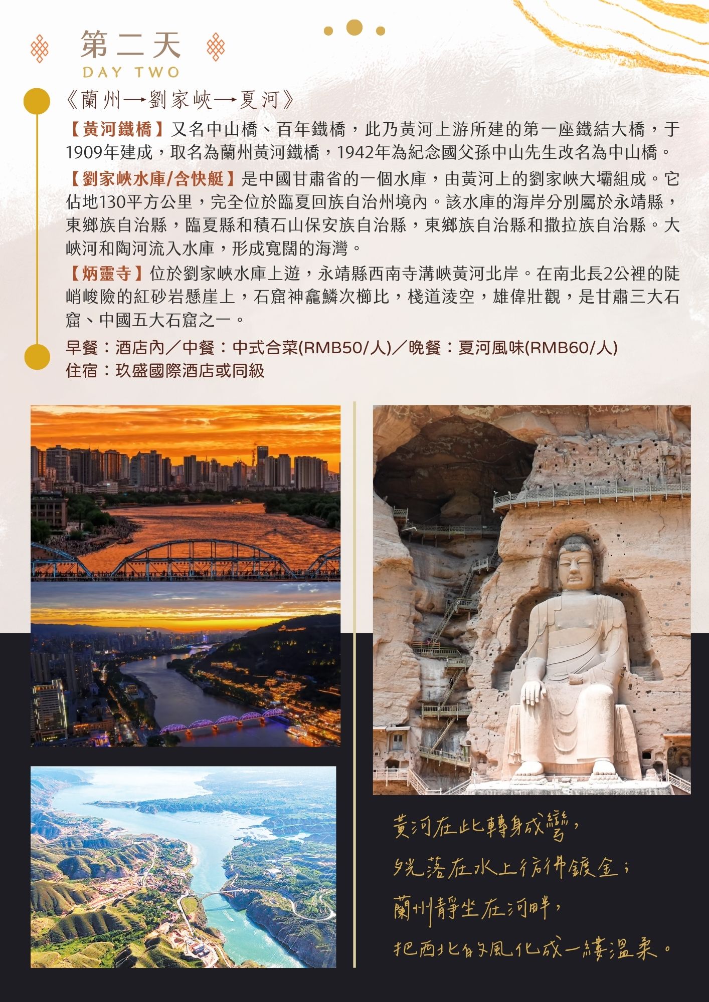 包含項目:含行程所列景點門票、餐食、酒店住宿,二人一間雙標間,含旅行社履約責任險-意外身故保險新台幣250萬、意外醫療保險新台幣20萬